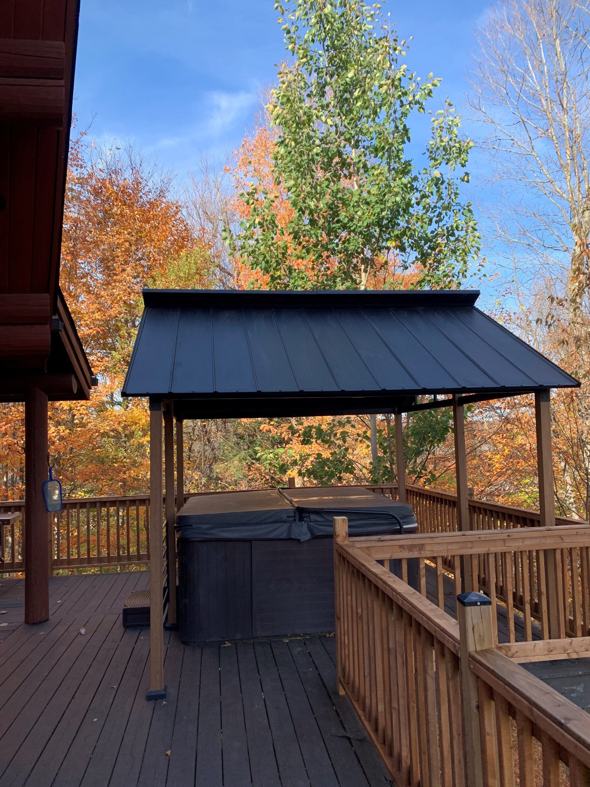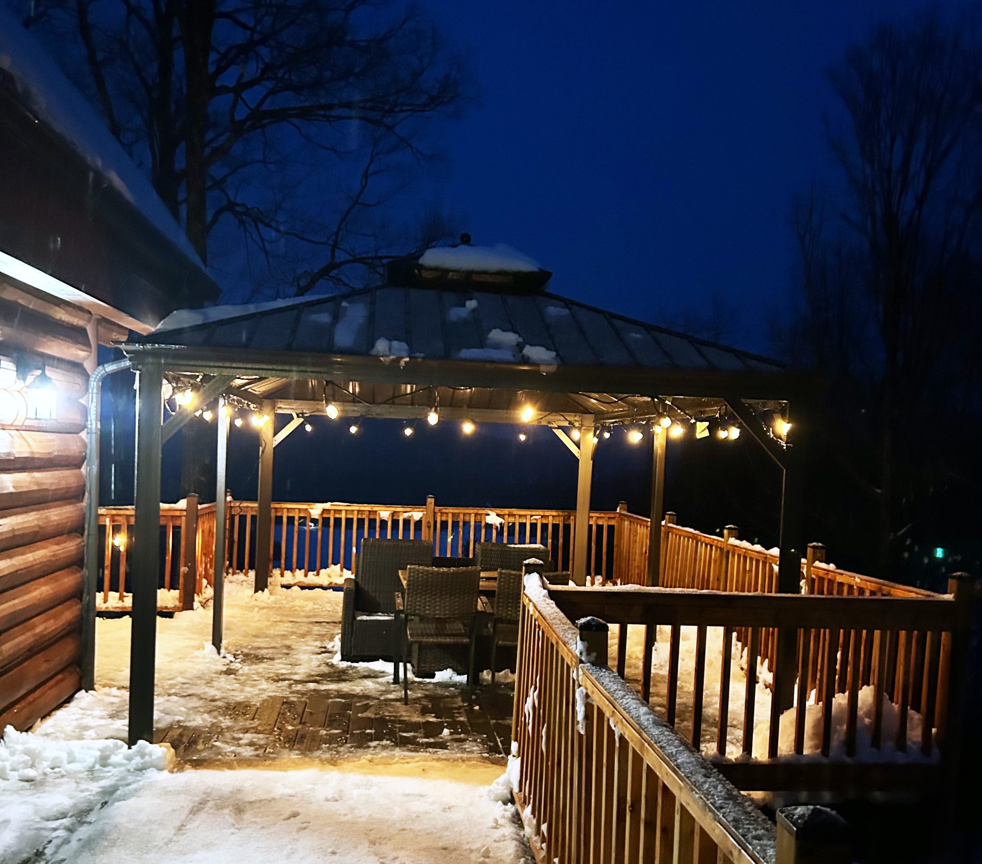 The Adlartok is a 5 bedroom, 4 bathrooms, sleeps 12, log home with a stone fireplace, pool table, gas BBQ and private exterior hot tub which is usable year round.